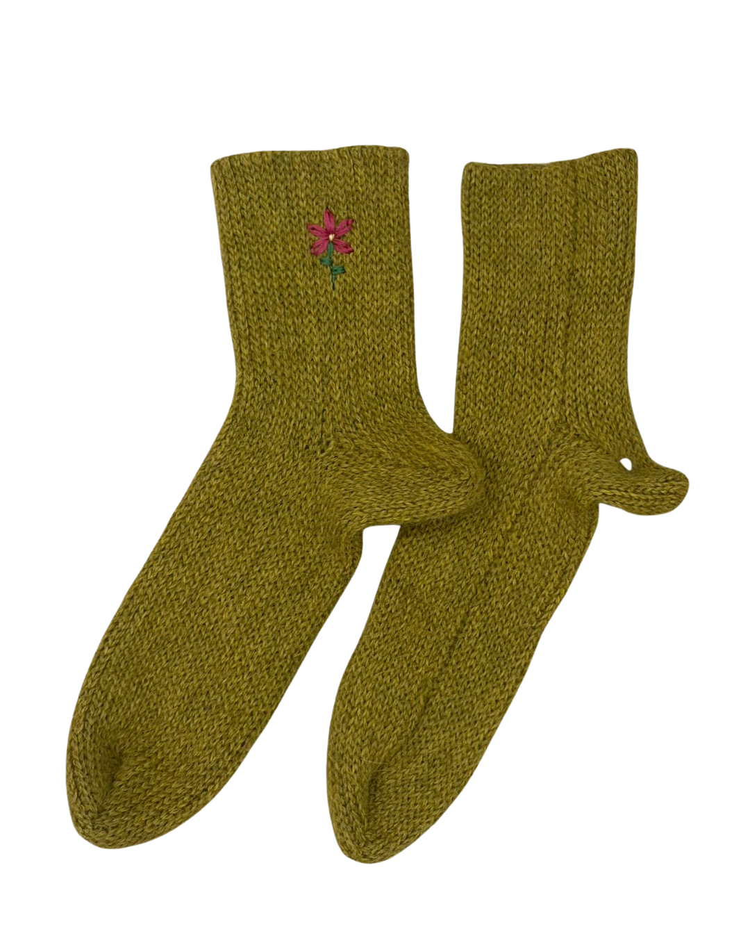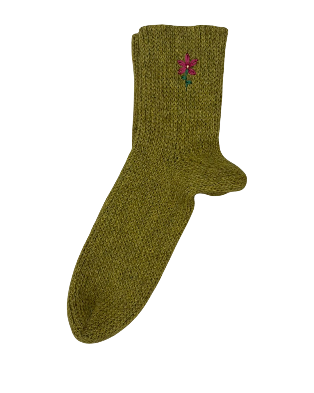 Disfruta de la suavidad y calidez de nuestros calcetines hechos a mano con fibra 100% natural de alpaca. Cada par está cuidadosamente tejido con técnicas artesanales, lo que los hace únicos, cómodos y duraderos. Este diseño especial viene en un hermoso color granate y cuenta con un delicado tulipán bordado, que añade un toque elegante y artesanal.